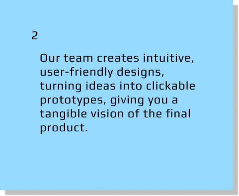 Our team creates intuitive, user-friendly designs, turning ideas into clickable prototypes, giving you a tangible vision of the final product.